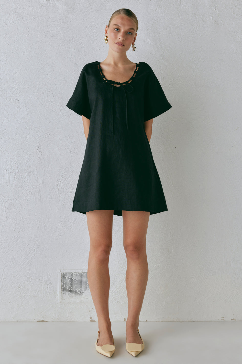 Nellie Linen Mini Dress Black
